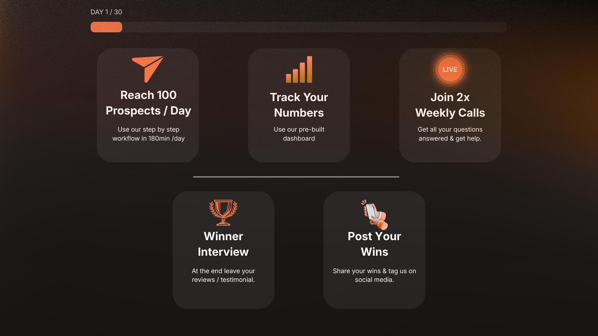 We are not giving you a course full with 100 hour long videos.We are inviting you to Join The Challenge with 15 Coaches & Agencies to implement a Ghost-proof Organic Client Acquisition system to fully book your calendar with qualified sales appointments every single day for FREE.